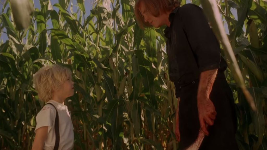 Eventually, Malachai and Isaac show up and instruct the kids to chase Burt through the cornfields. In a moment of surprising humanity and poignancy, Malachai comforts one of the smallest children who is terrified He Who Walks Behind the Rows will eat him.